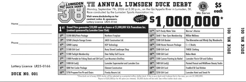 A fundraiser where 35,000 ducks race the QuâAppelle River and the first 20 ducks win a prize!